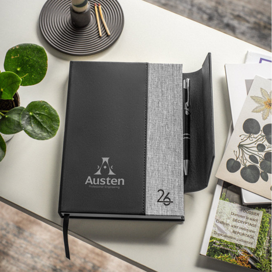 Organitza amb estil i consciència ecològica. Agendes i calendaris fabricats amb materials reciclats, perfectes per a regals corporatius responsables i marxandatge ecològic .