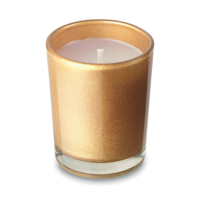 Espelma aromàtica en suport de vidre.