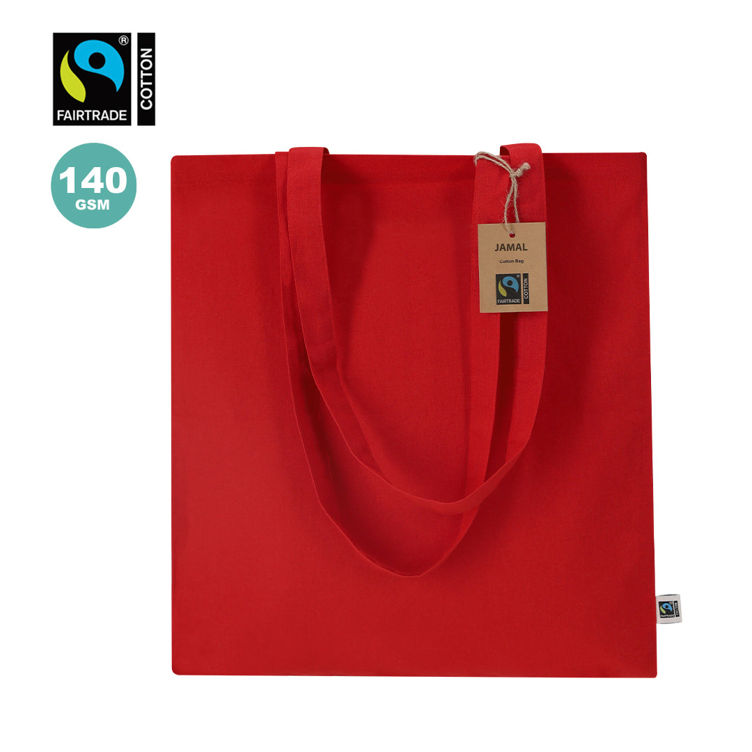 Bolsa confeccionada principalmente en algodón de 140g/m2. Con certificación Fairtrade (Comercio Justo) un sistema comercial solidario y alternativo al convencional que persigue el desarrollo de los pueblos y la lucha contra la pobreza.