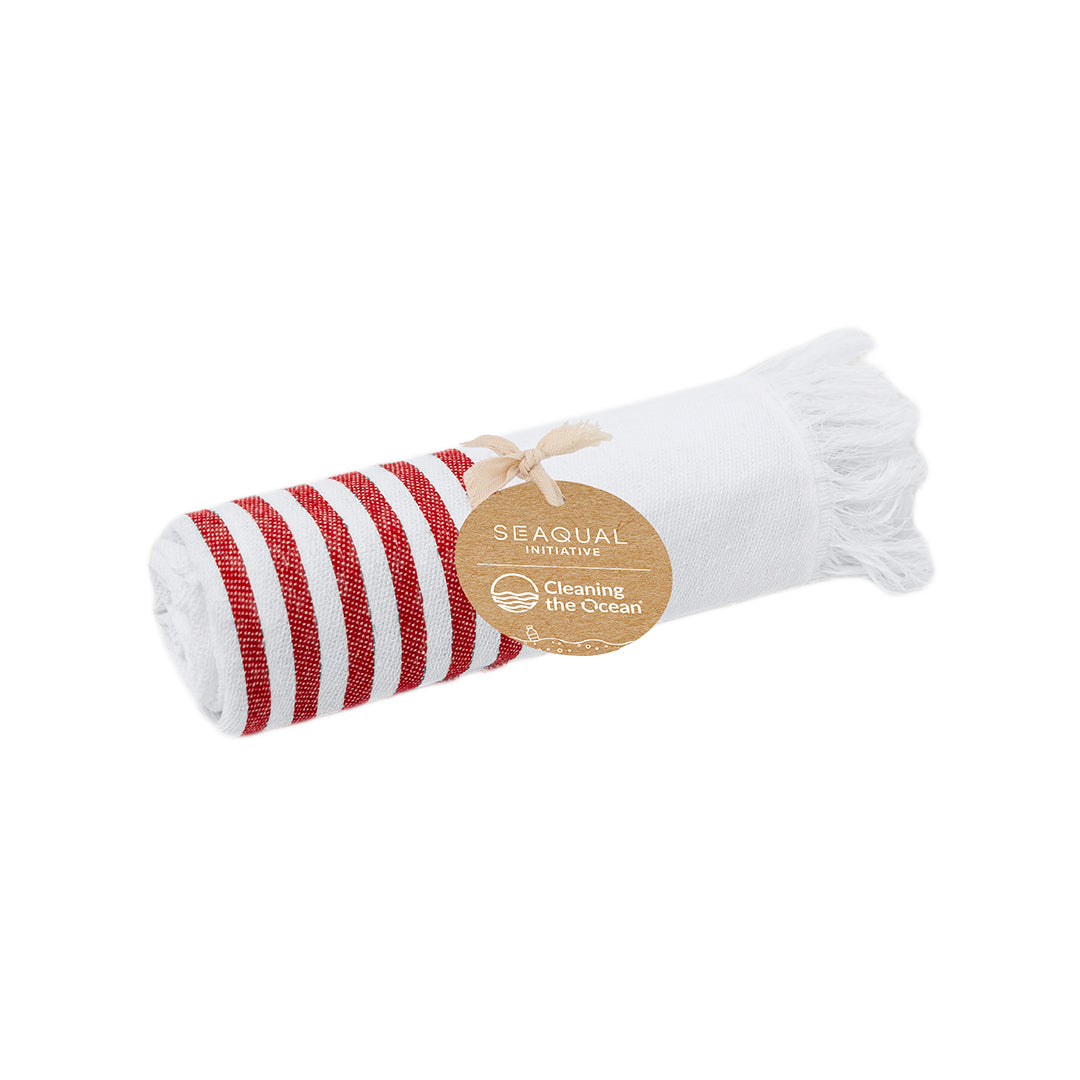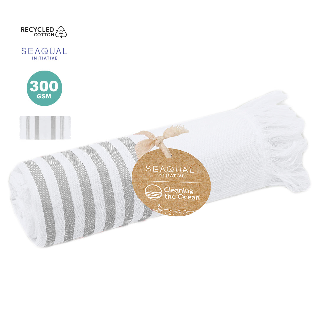 Suave pareo-toalla de 300 g/m², confeccionado en una combinación de algodón reciclado y poliéster reciclado SEAQUAL.