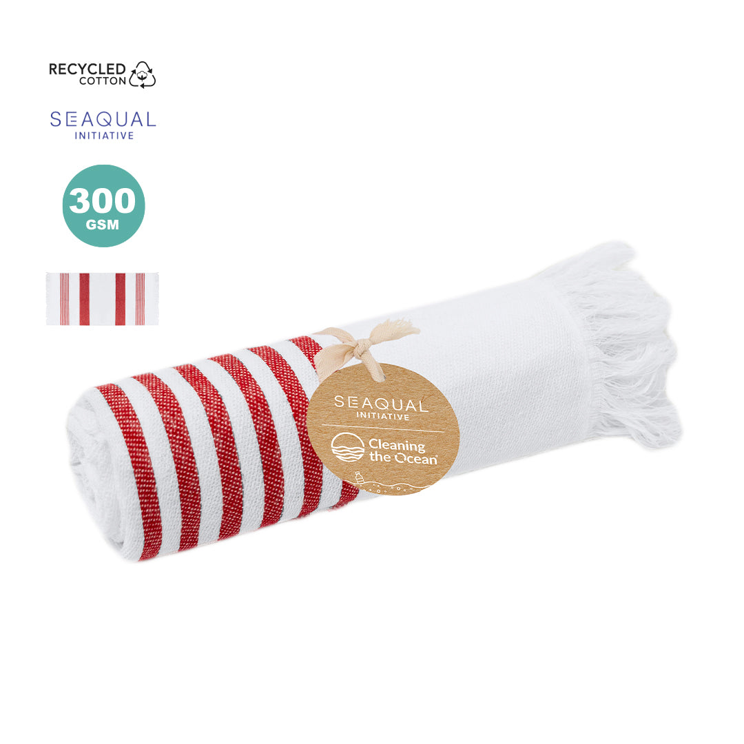 Suave pareo-toalla de 3000 g/m², confeccionado en una combinación de algodón reciclado y poliéster reciclado SEAQUAL.