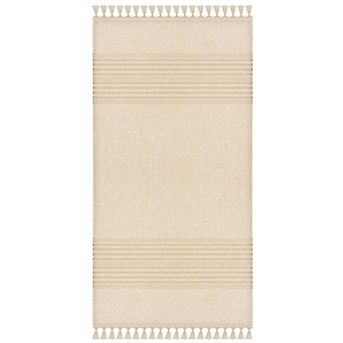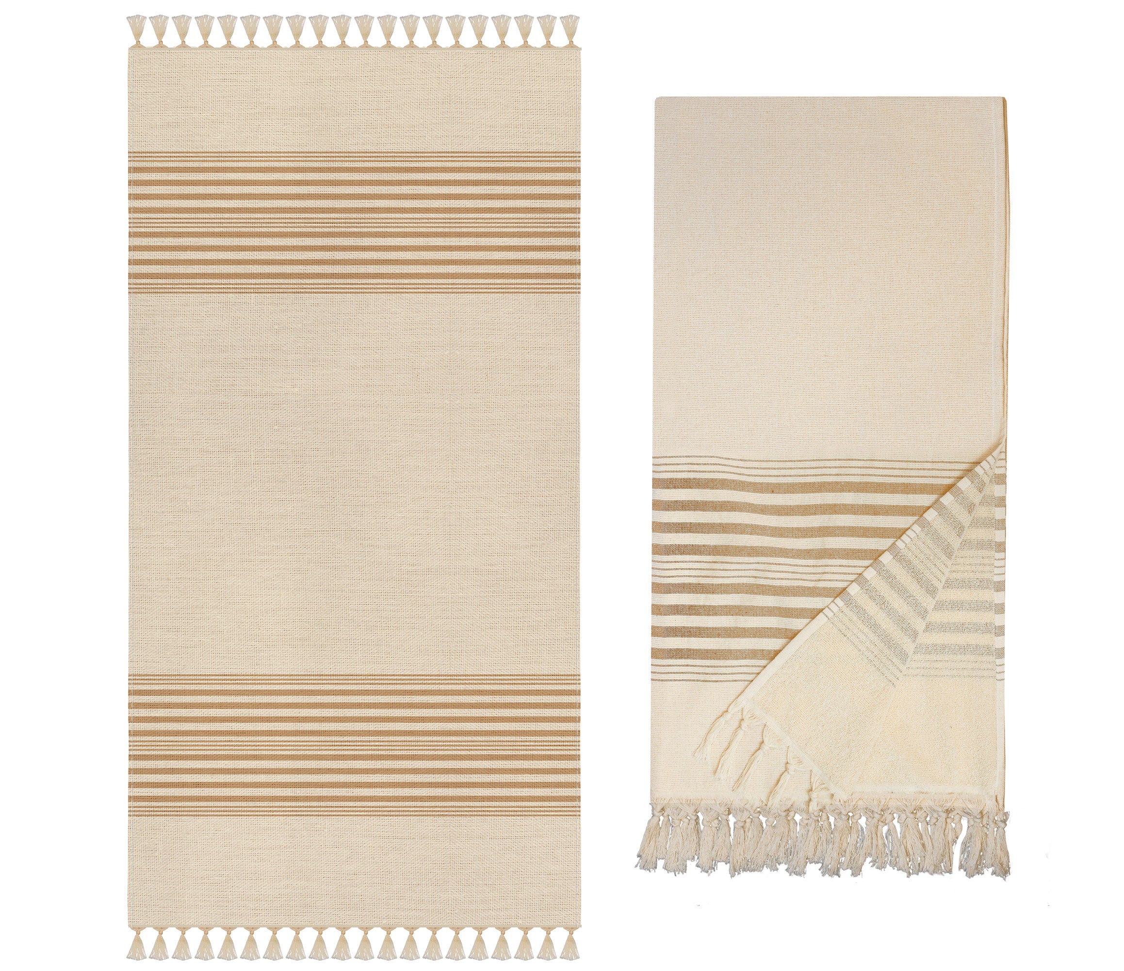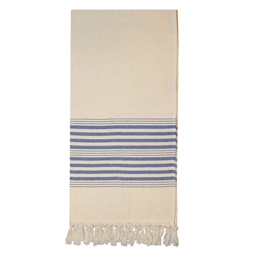 Extremos acabados en flecos que le aportan un toque elegante a la toalla.