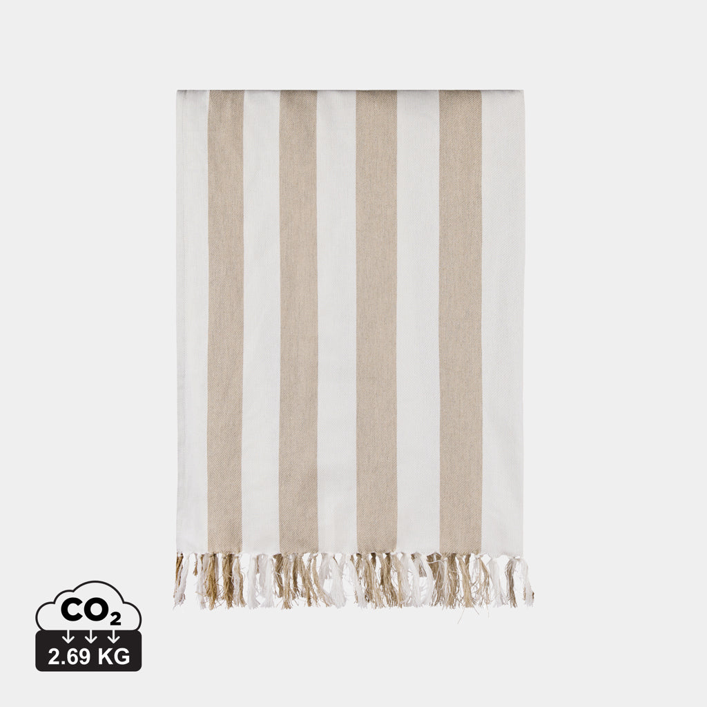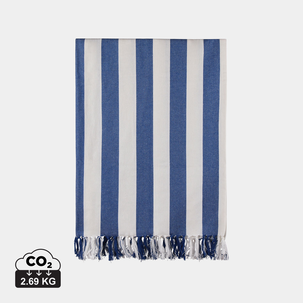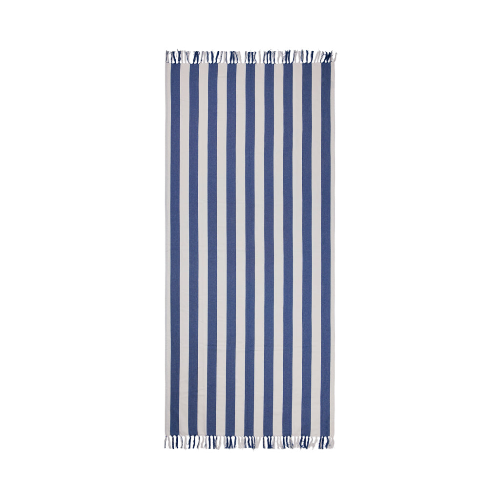 Esta toalla de playa para hammam presenta un patrón clásico de rayas bicolor con flecos en los lados cortos. Fabricada con una mezcla ligera y aireada de 200 g/m², combina la comodidad del algodón con los beneficios del secado rápido del poliéster.