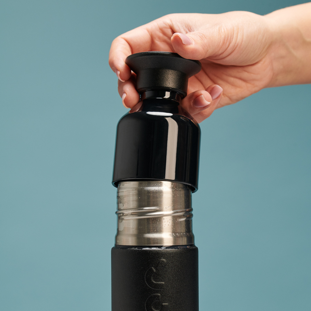 Fabricada con un 90 % de acero inoxidable reciclado de alta calidad, esta botella no solo tiene un aspecto elegante, sino que también está diseñada para durar. Su diseño inteligente y su compromiso con el medio ambiente la convierten en una elección responsable y con estilo.