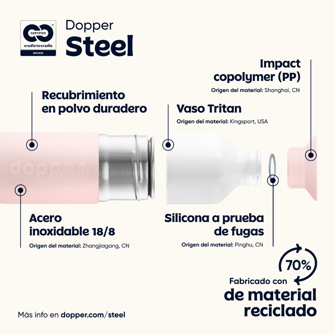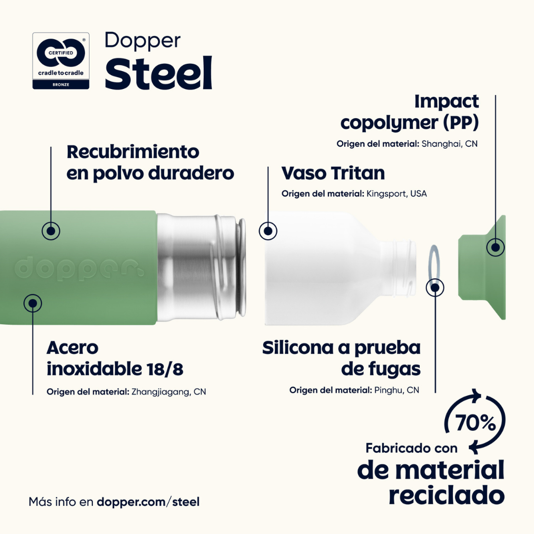 - Cuerpo de acero inoxidable fabricado con un 90 % de acero reciclado.