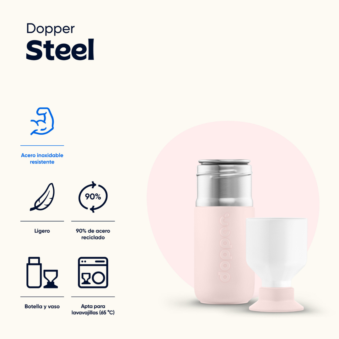 Al usar una botella Dopper, evitarás la venta de 104 botellas de agua embotelladas de un solo uso cada año.