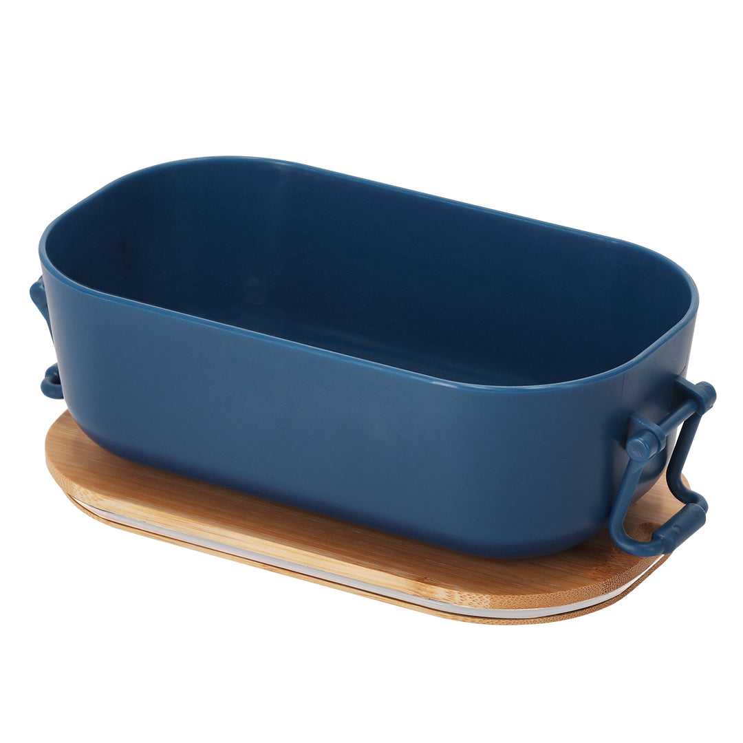 Fiambrera de 850 ml de capacidad, fabricada en PP Reciclado resistente con tapadera hermética de bambú natural. Un diseño práctico y duradero que incorpora cierres de seguridad laterales, perfecta para llevar la comida al trabajo, a la universidad o en el día a día.