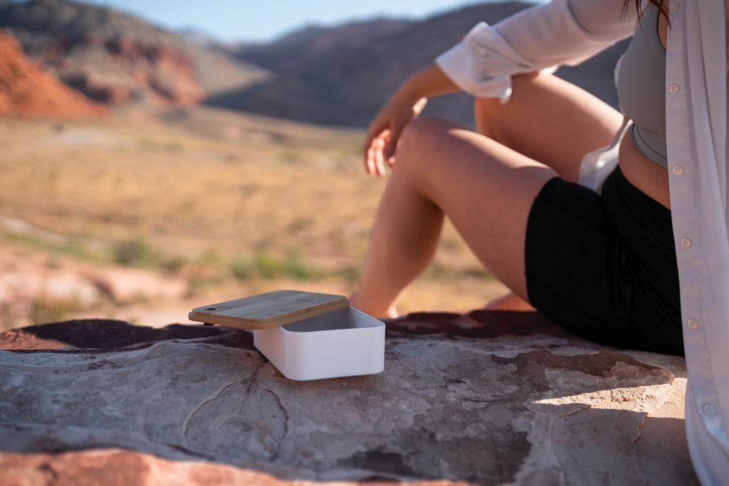 Llevar tu almuerzo es más fácil que nunca con esta fiambrera de PP reciclado certificado por RCS y tapa de bambú.