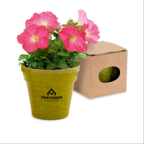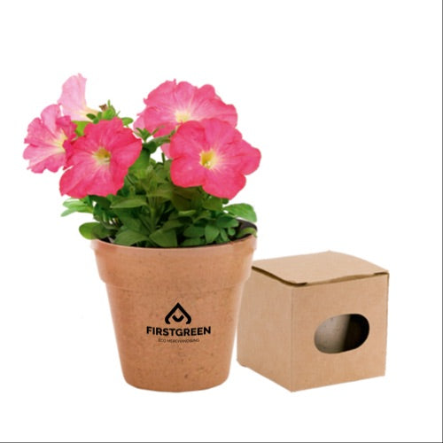 Macetas con semillas de Petunia en macetero biodegradable de variados colores. Con 5-8 semillas y bolsita de sustrato de crecimiento.