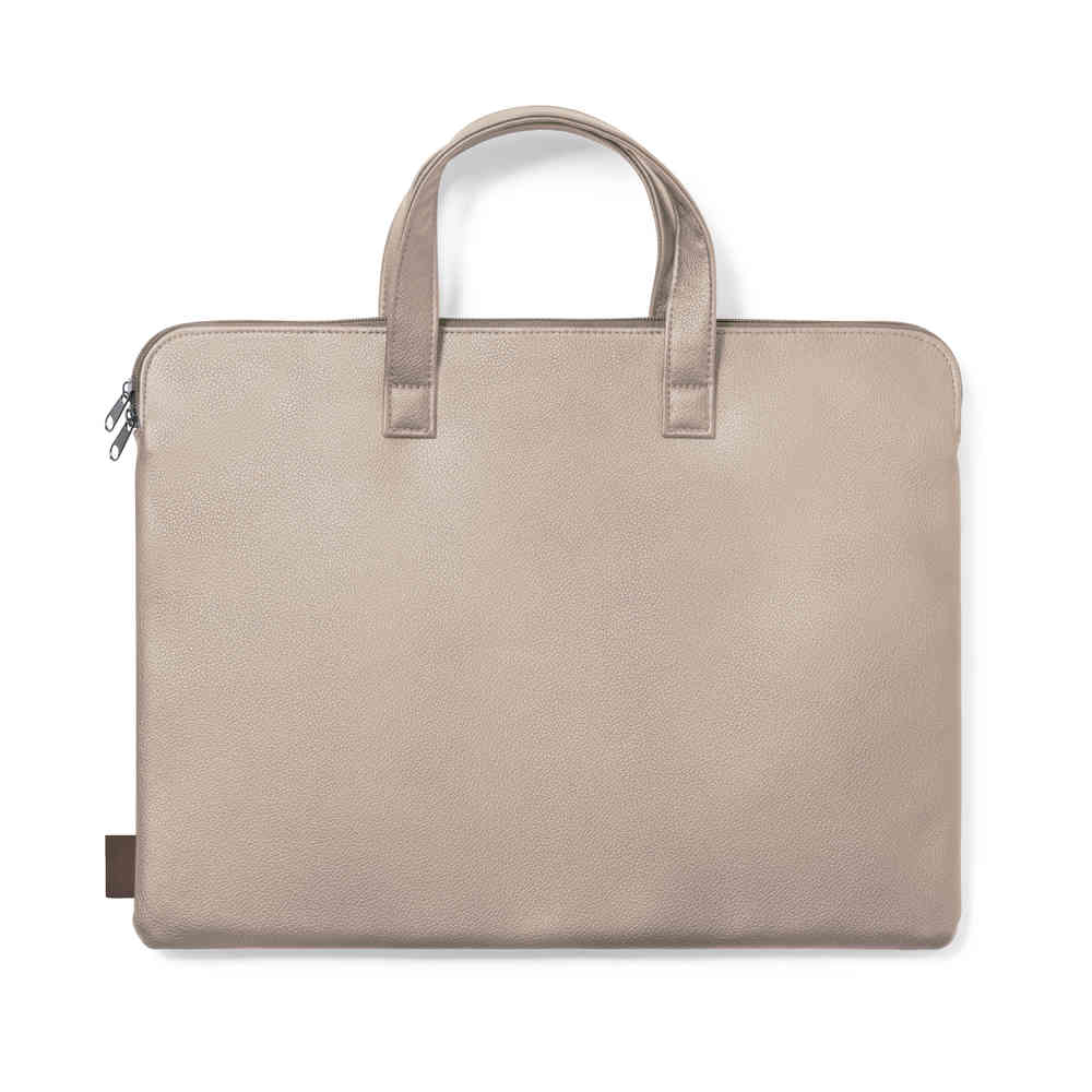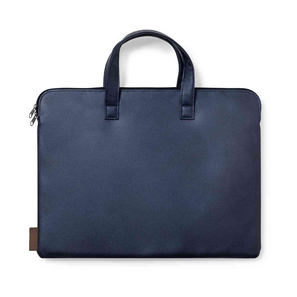 Resistente portadocumentos premium, fabricado en cuero reciclado. Compartimento principal con cierre de cremallera y doble tirador metálico. Interior acolchado, con bolsillo exterior y asas reforzadas a juego. Etiqueta exterior con distintivo cuero reciclado.