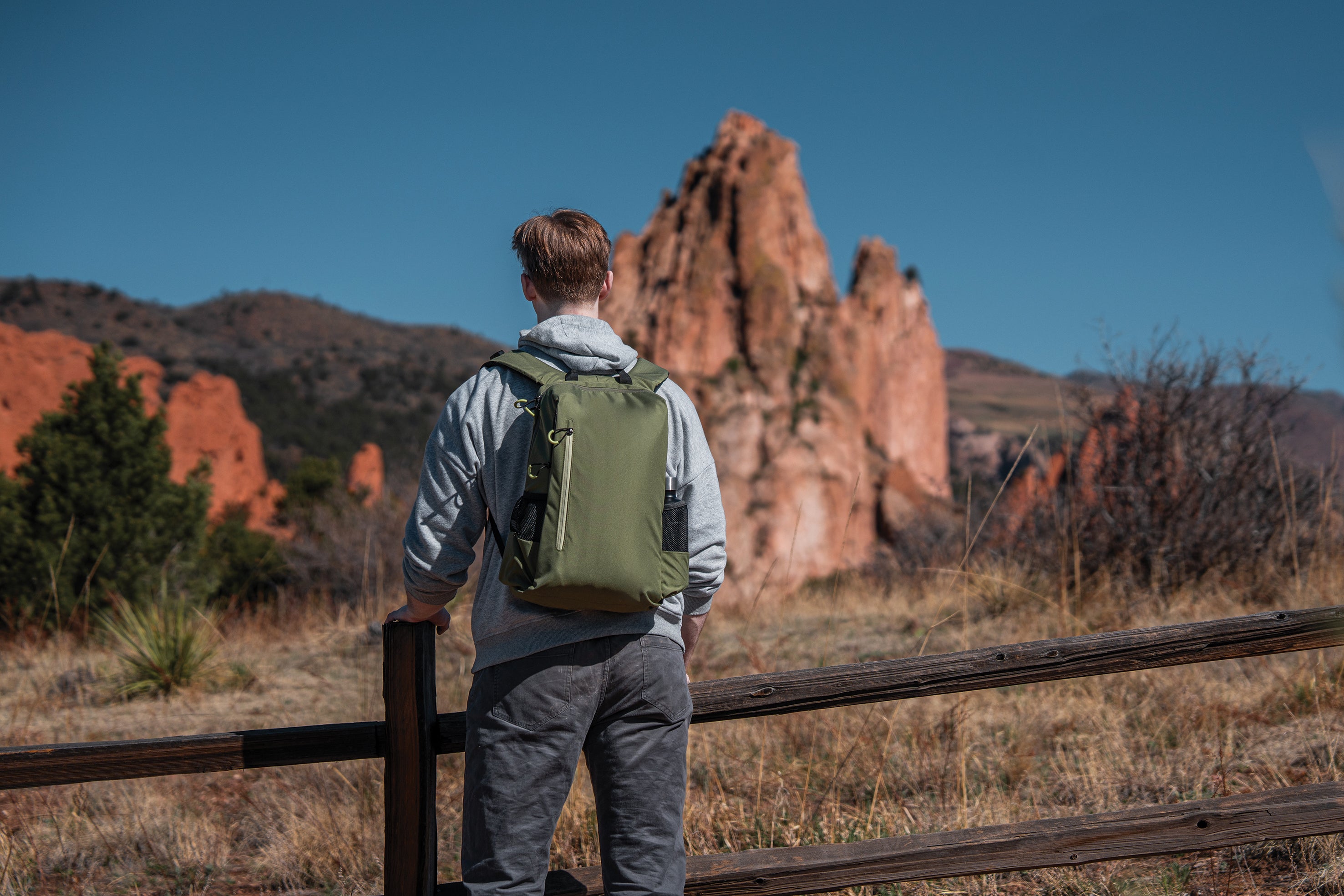 - Esta mochila está hecha de 32.8 botellas recicladas.