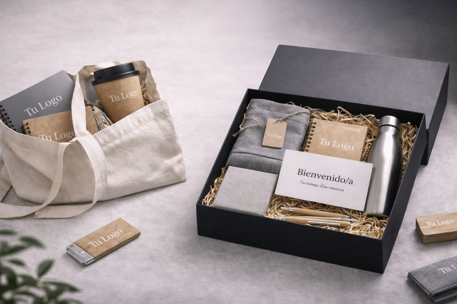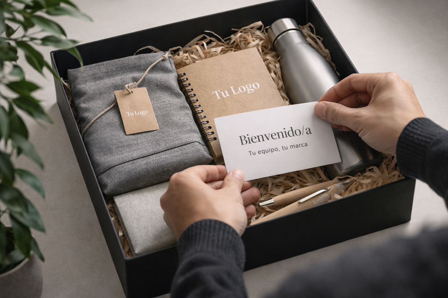 Welcome packs personalizados para empresas ideales para onboarding de nuevos empleados, fidelización y cultura corporativa. Packs sostenibles con tu logo, listos para dar una bienvenida memorable.