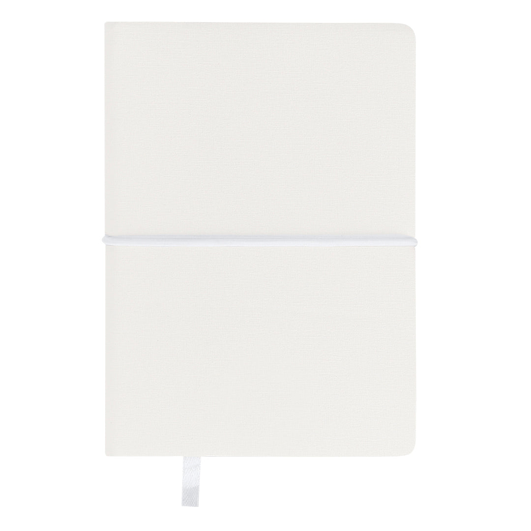 Bloc de notas con cubiertas en PU reciclado, flexible y resistente, ideal para empresas que buscan regalos corporativos ecológicos y opciones de merchandising sostenible. Dispone de correa de cierre elástica y marcapáginas a color para un uso práctico y elegante.