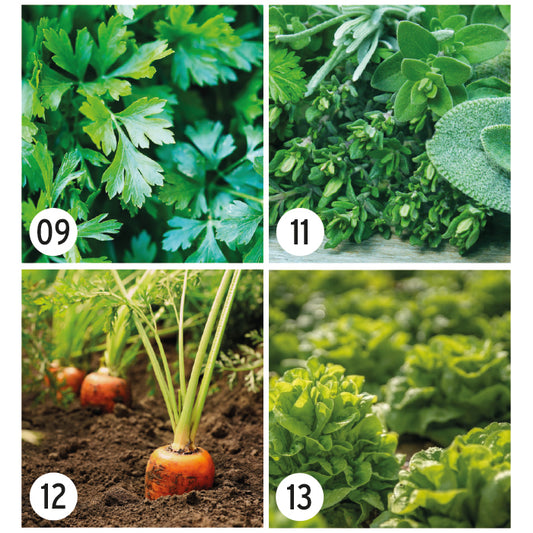 Vas a encontrar semillas de pino, albahaca, perejil, menta, margarita, tomate, girasol, amapola, pimiento, lechuga, pepino, cebolla, flores silvestres, etc,...