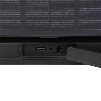 El altavoz utiliza paneles solares monocristalinos de alta calidad con una tasa de conversión del 19%. La tasa de carga depende de las condiciones. Con lámpara LED integrada para usar el altavoz incluso cuando se ha puesto el sol.