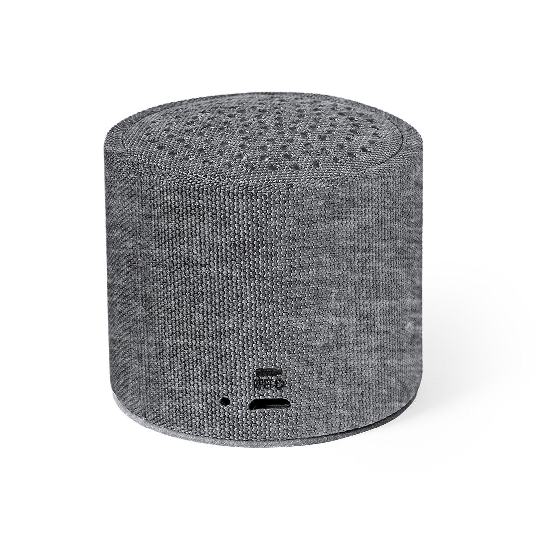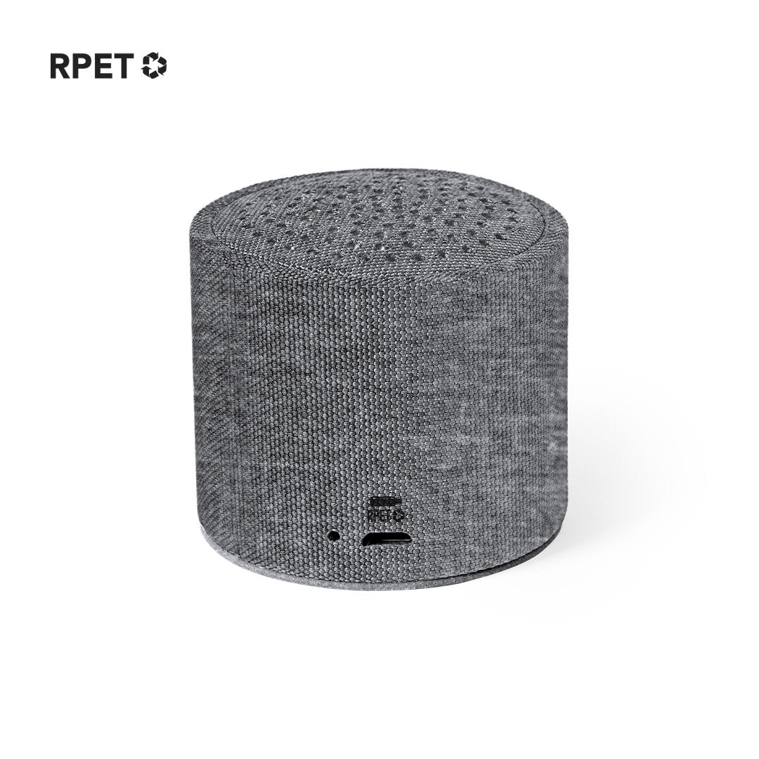 Compacto altavoz de línea nature y conexión Bluetooth® 5.0. Carcasa fabricada en poliéster RPET, elaborado a partir de plástico reciclado, para así fomentar la reutilización de residuos plásticos y ayudar a la sostenibilidad del planeta. 3W de potencia, compatible con iOS y Android. Incluye cable de carga micro USB y base antideslizante. Presentado en atractiva caja de diseño eco. Con distintivo RPET sobre el artículo.