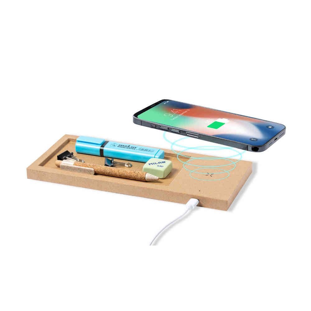 • Cargador Inalámbrico Organizador Sostenible de Cartón Reciclado Personalizable con Bandeja de Alamacenaje de Escritorio Taron