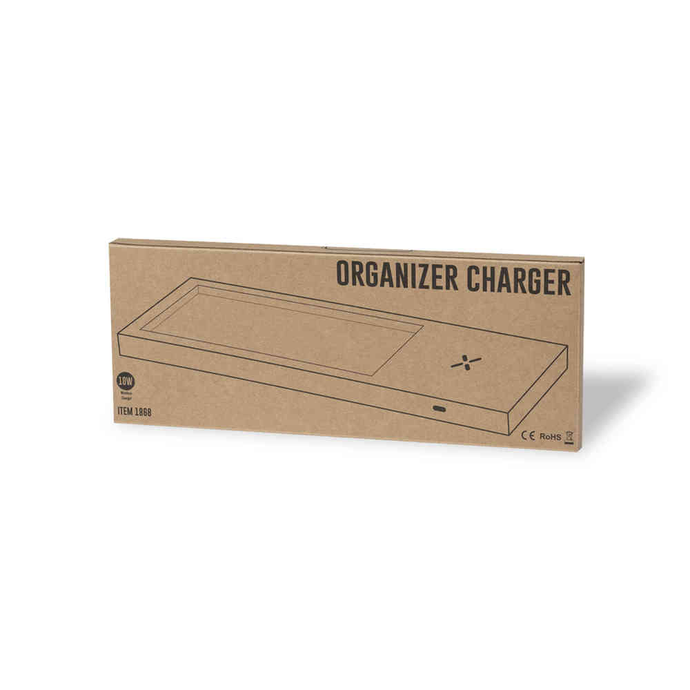 Cargador Inalámbrico Organizador Sostenible de Cartón Reciclado Personalizable con Bandeja de Alamacenaje de Escritorio Taron