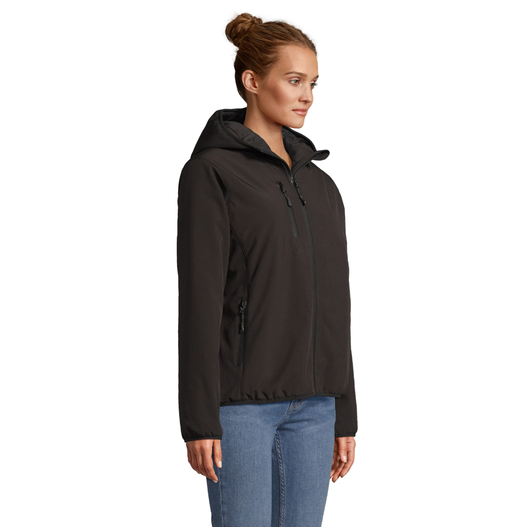 Este softshell de invierno totalmente acolchado combina diseño funcional y compromiso con la sostenibilidad, siendo una prenda perfecta para uniformes de empresa o como parte de tu merchandising corporativo ecológico.