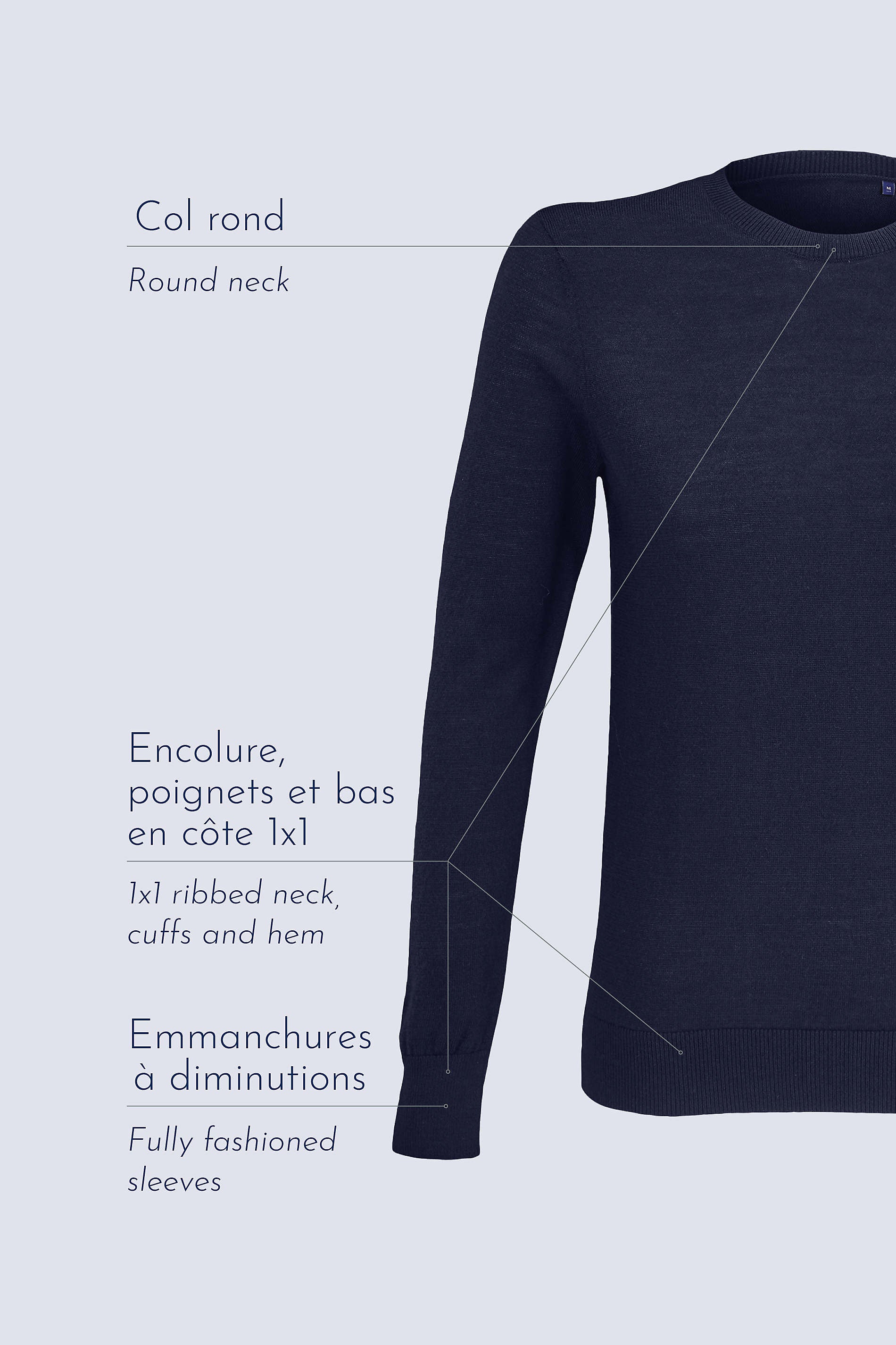 - Cuello, puños y bajo en canalé 1x1.