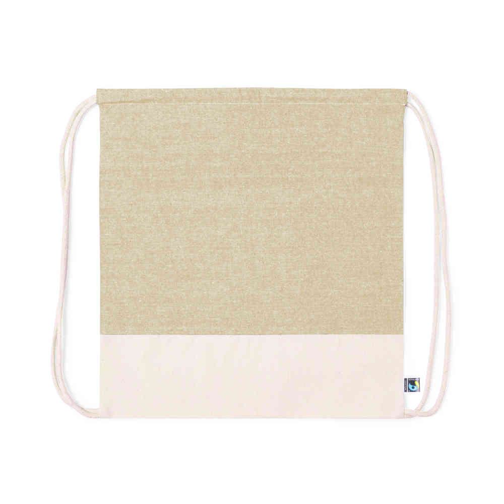• Fairtrade Sustainable Drawstring Backpack 100% Cotton 140 gr/m2 to Personalize with Fairtrade Ferdin Certificate