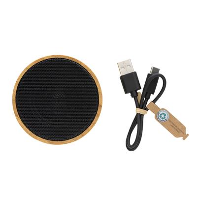 3W wireless speaker made with 100% FSC® bamboo and RCS (Recycled Claim Standard) certified recycled ABS casing.