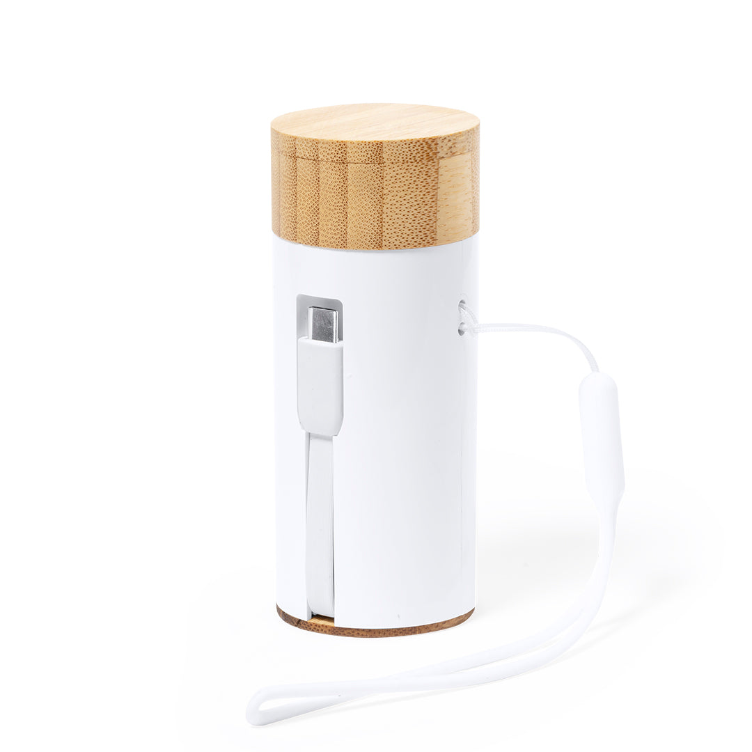 Bluetooth® 5.0 in-ear headphones with power bank in the charging base. With integrated controls and hands-free function, each with a 30 mAh capacity battery. They are housed in a matching charging base, with a bamboo cover and base, which includes an internal 4,500 mAh capacity battery and an integrated Type C charging cable. Base with Type C input/output connections, USB connection and LED charging status indicator, as well as two non-slip rubber pads. Presented in an attractive kraft design box.