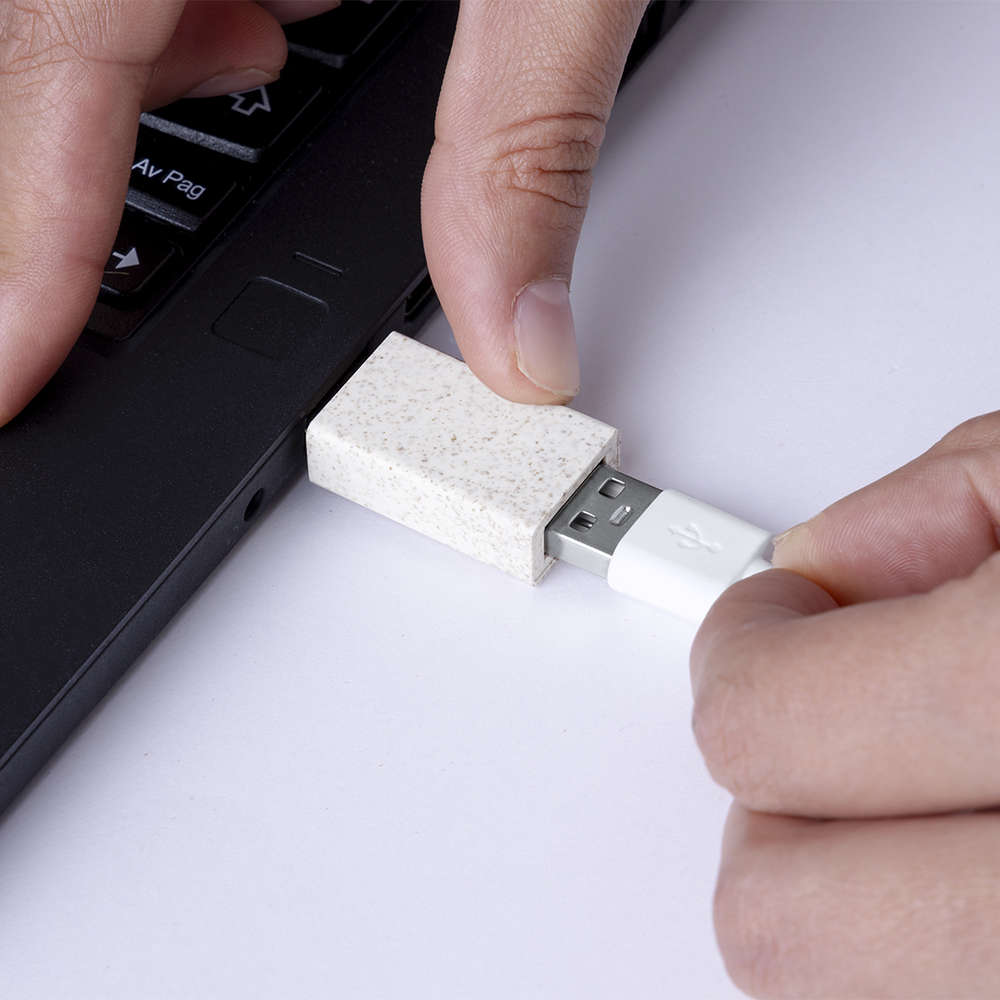 Practical security and privacy set. Includes a RFID-protected card made of bamboo, a webcam cover made of wheat straw and a data blocker made of wheat straw, preventing data transfer and allowing the device to be charged. Presented in an elegant box with a die-cut compartment for each accessory.