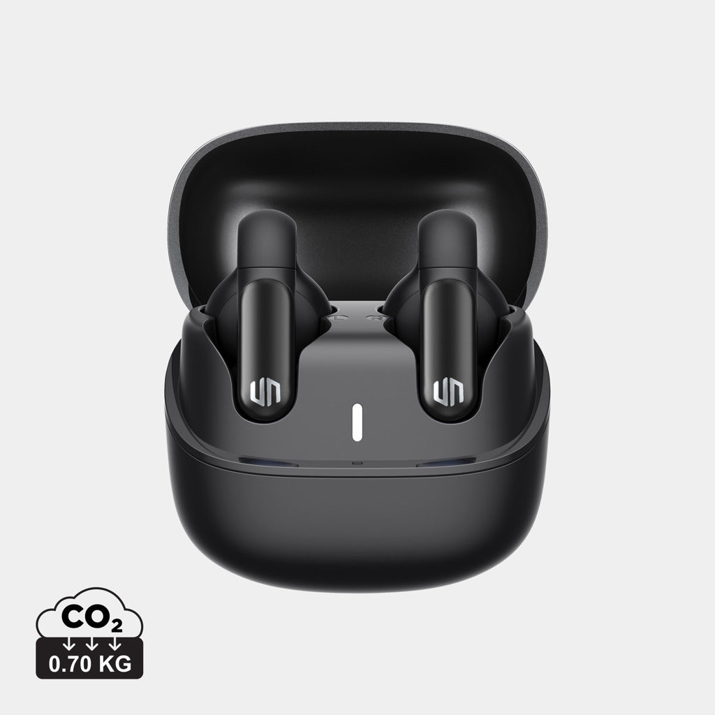 Disfruta de tu música y podcasts favoritos con estos auriculares inalámbricos sostenibles, que combinan diseño elegante, materiales naturales y un sonido de alta calidad. Fabricados en ABS reciclado (100 % rABS) y bambú, son la opción ideal para quienes buscan merchandising ecológico y regalos de empresa respetuosos con el medio ambiente.