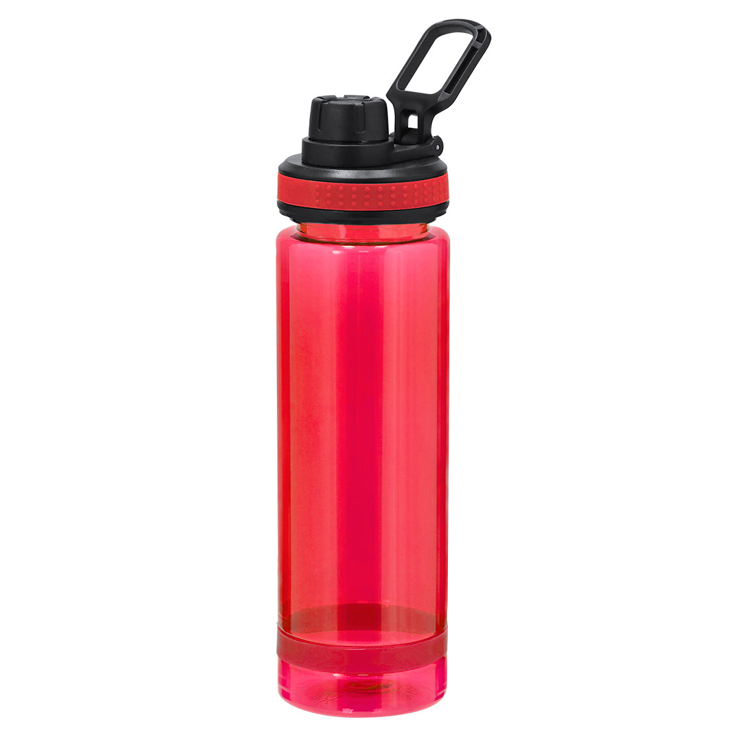 Durable RPET bottle with a capacity of 700 ml. In matte translucent colour. Includes a black screw-on lid for an optimal seal, a comfortable screw-on cap for drinking and a firm carrying handle. BPA free.