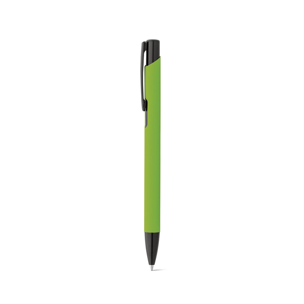 Ballpoint pen made of aluminium and body with strong and attractive colours. The finish is made of rubber which gives it a soft touch. Blue writing. ø10 x 137 mm