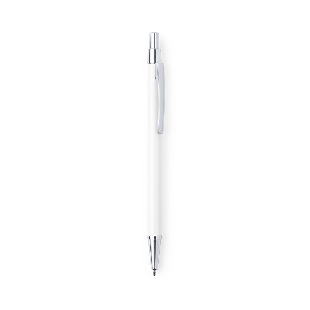Push-button mechanism, with a body available in a wide range of metallic colours and chrome accessories. With a metal clip, blue ink and a distinctive recycled aluminium on the top of the pen. GRS (Global Recycled Standard) certification , which guarantees the recycled origin of the material used to manufacture the product.
