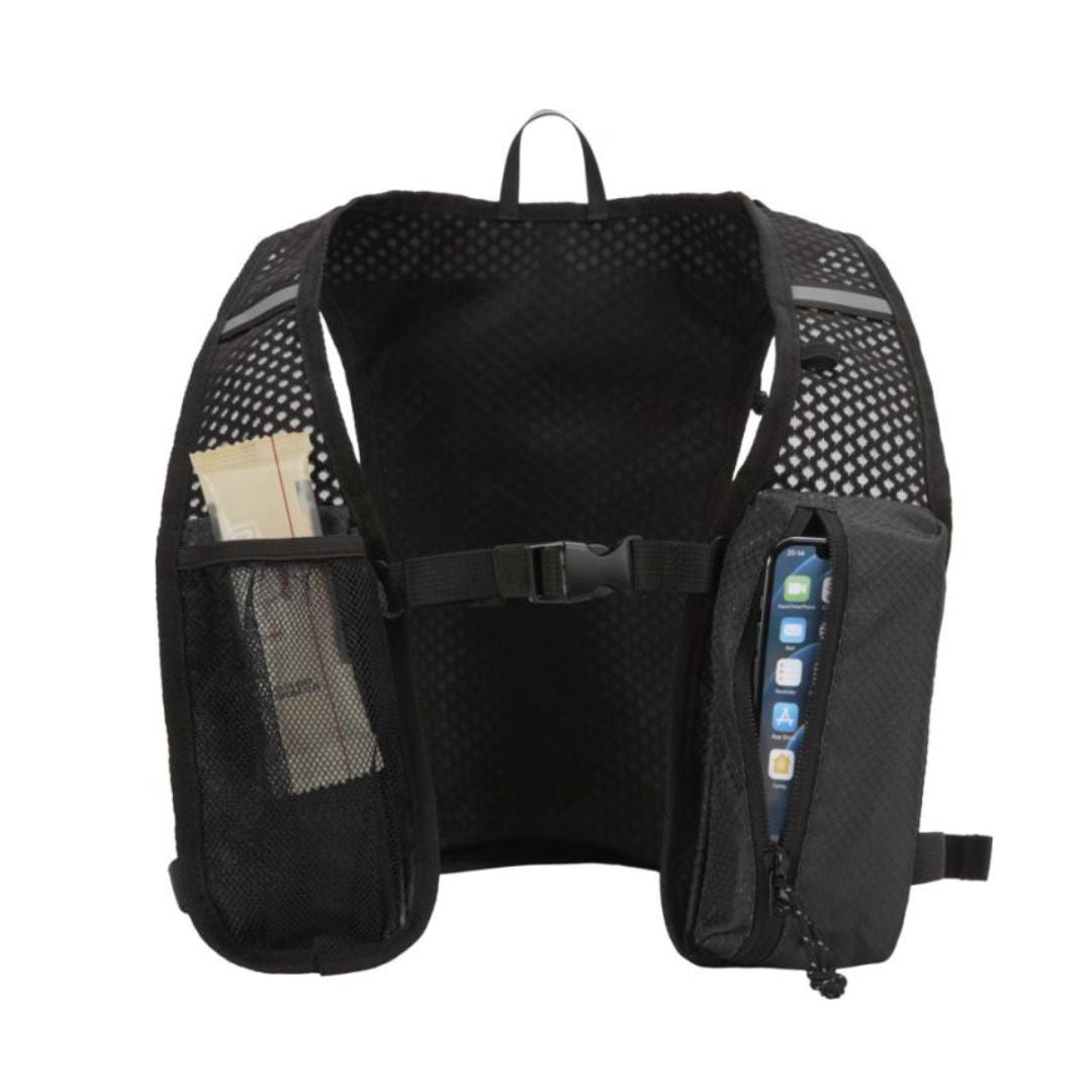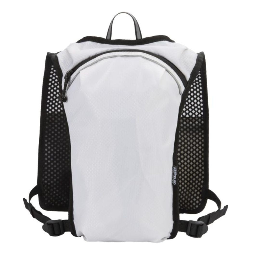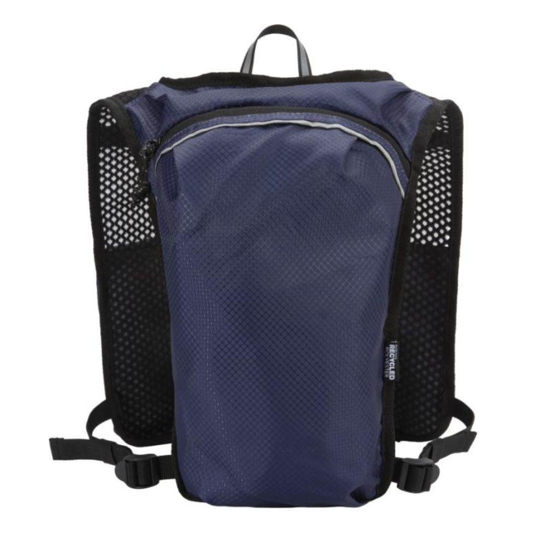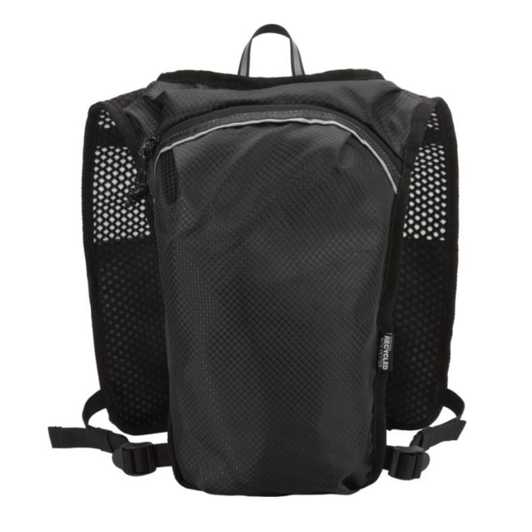 Diseñado para running de larga distancia, senderismo y actividades outdoor ligeras, incorpora espalda de malla transpirable, correas ajustables en los hombros, dos bolsillos delanteros en el pecho para botellas, móvil o accesorios pequeños, y un compartimento interior independiente para bolsa de hidratación de 1,5 litros no incluida. Con capacidad total de 5 litros, es una excelente alternativa para regalos promocionales sostenibles, regalos corporativos y productos promocionales personalizados vinculados a deporte, bienestar y campañas activas de merchandising para empresas. Además, este producto tiene la huella de carbono calculada de 1,319 kg CO2-eq, un dato especialmente relevante para empresas que quieren elegir artículos promocionales con impacto ambiental medible.