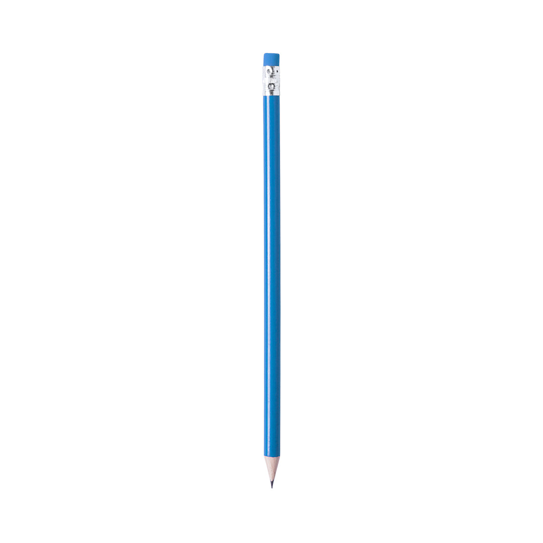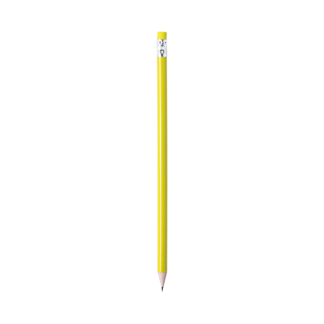 Glossy wooden pencil with round body and matching eraser. Available in a wide range of colours. Black lead and sharp tip.
