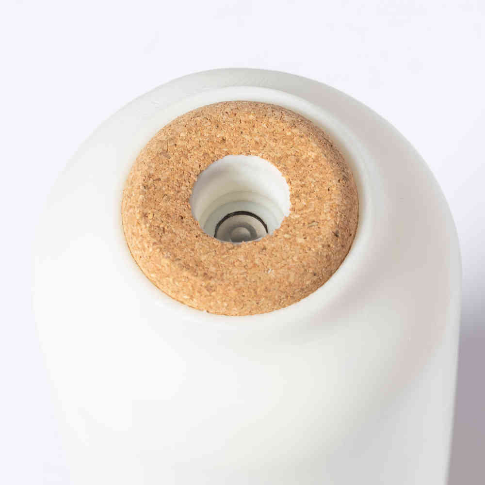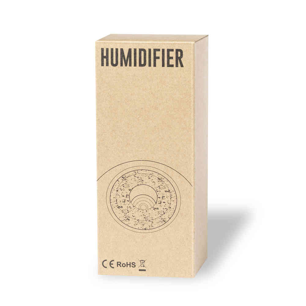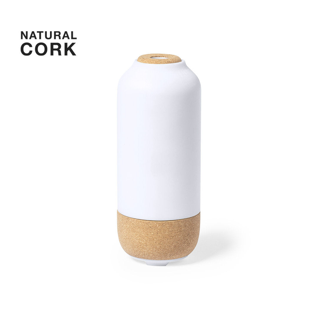 Elegant and decorative humidifier, made of resistant PP and natural cork base. With 2 vaporization modes and 200 ml tank, suitable for use in rooms up to 25m2. USB connection, with 1 m Type C cable included. Presented in an individual kraft design box, with instruction manual in Spanish and English and replacement filter.