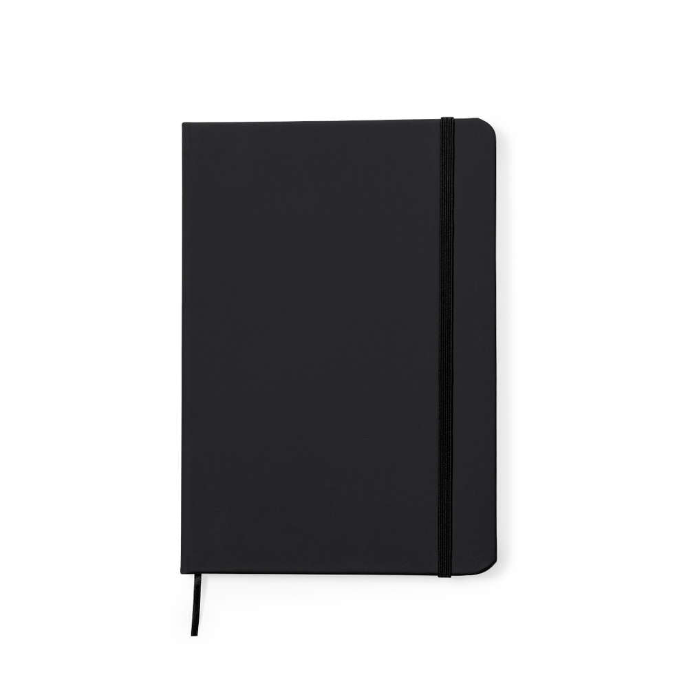 Bloc de notas con tapas rígidas fabricadas en polipiel reciclada en distintos colores. Interior con 100 hojas de disposición a una raya. Incluye elástico de cierre del mismo color. Con distintivo Polipiel Reciclada. Presentado en bolsa individual reciclada.