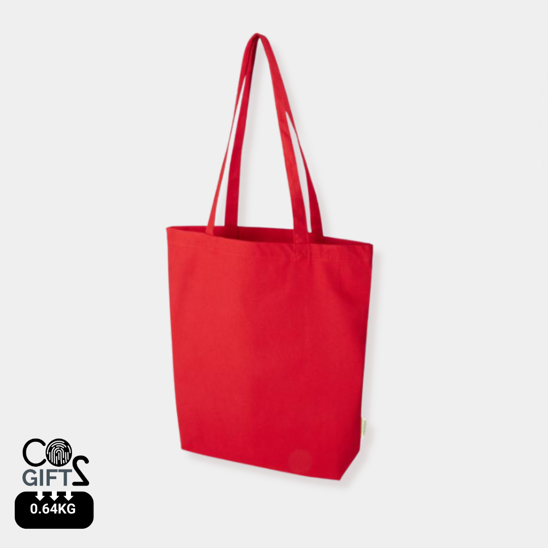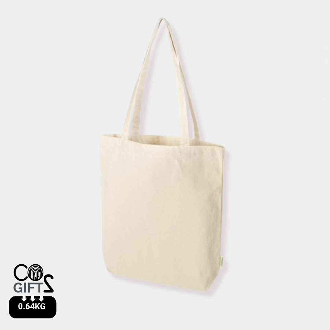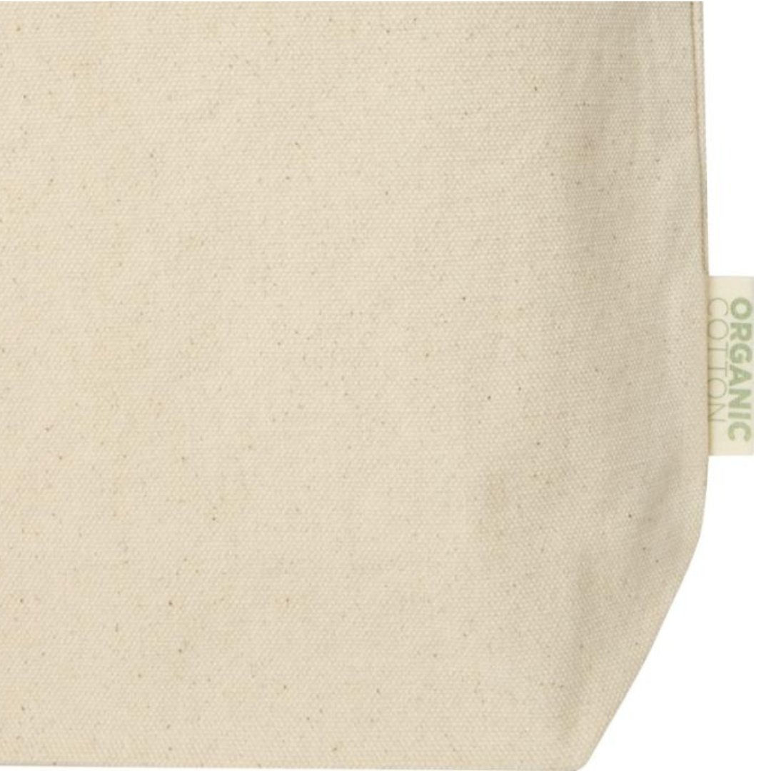 La bolsa tote Odisha está confeccionada en algodón orgánico 100 % certificado OCS, de 180 g/m², procedente de la India. Su diseño amplio y resistente la convierte en una opción ideal dentro del merchandising ecológico y los regalos corporativos sostenibles.