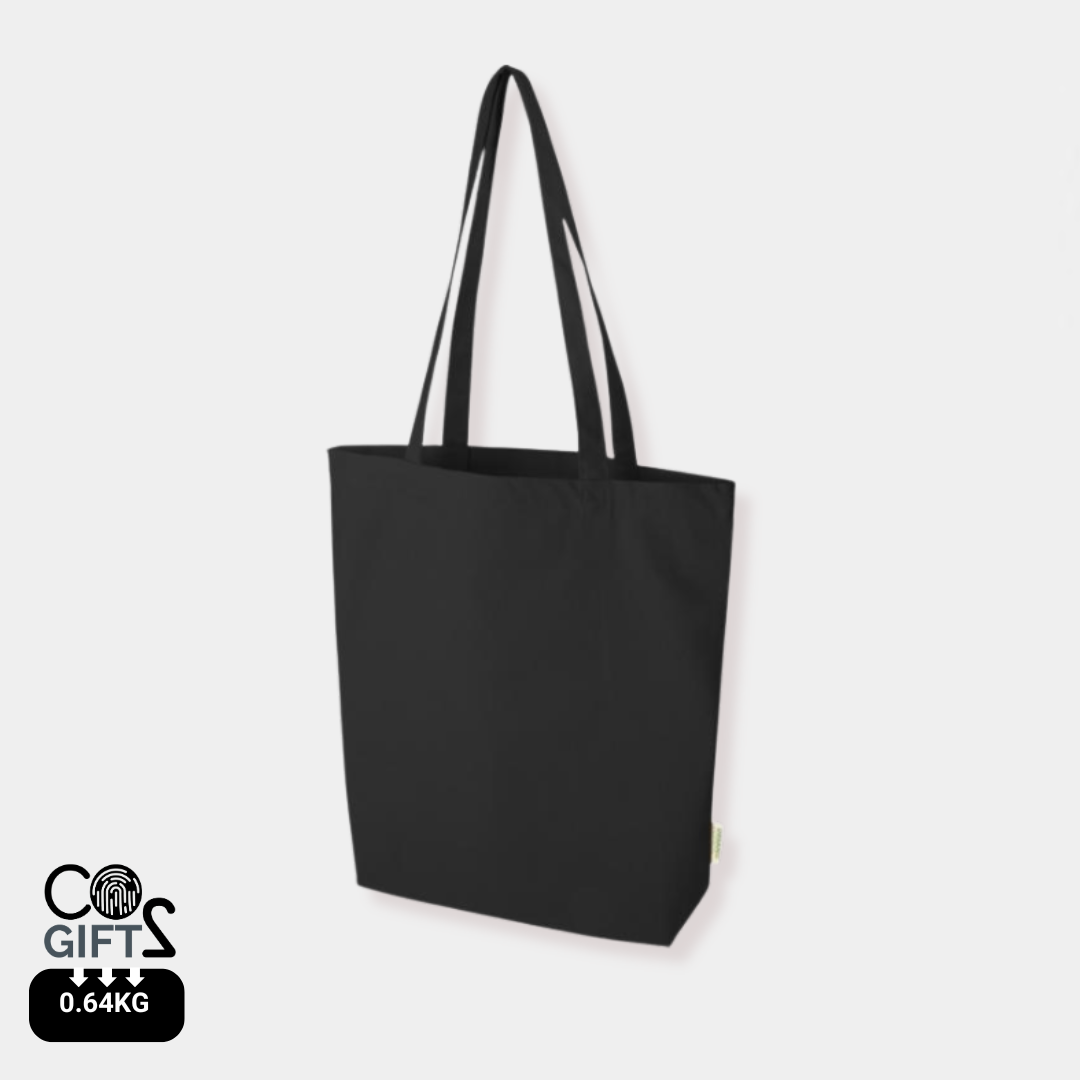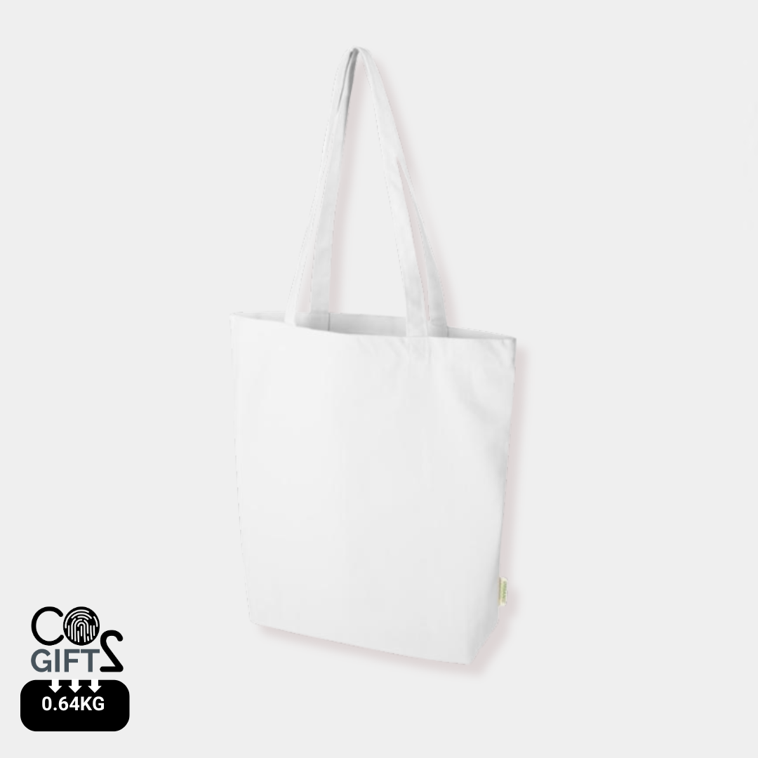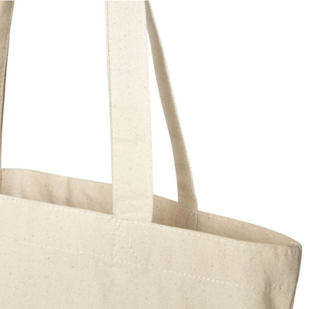 La bolsa tote Odisha está confeccionada en algodón orgánico 100 % certificado OCS, de 180 g/m², procedente de la India. Su diseño amplio y resistente la convierte en una opción ideal dentro del merchandising ecológico y los regalos corporativos sostenibles.