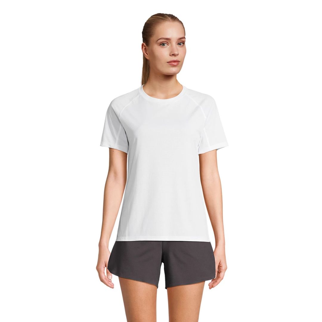 Su corte ajustado y el cuello redondo del mismo tejido que el cuerpo aportan un estilo moderno y cómodo, ideal tanto para actividades deportivas como para acciones promocionales y eventos corporativos.