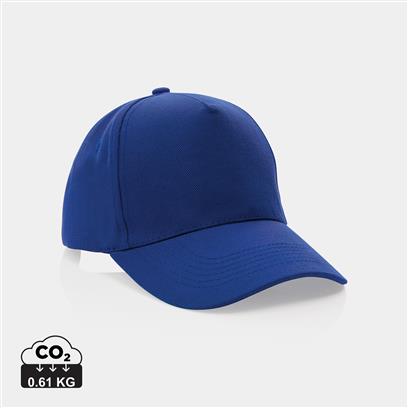Una gorra sencilla y cómoda. Esta gorra de 5 paneles tiene una visera curva, ojales bordados para ventilación y hebilla de metal. De algodón fabricada 100% con materiales reciclados y trazador AWARE ™.