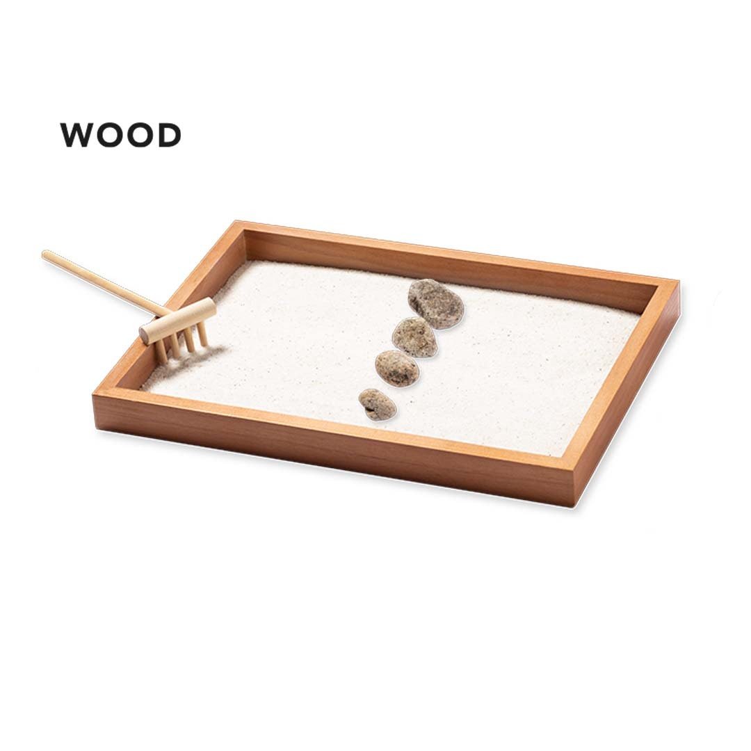 Este Jardín Zen de Madera personalizado es ideal para utilizarlo como promoción en lugares dónde se quiere transmitir una imagen limpia y de paz, como salas de espera, centros de Yoga, centros lúdicos o lugares de ocio.