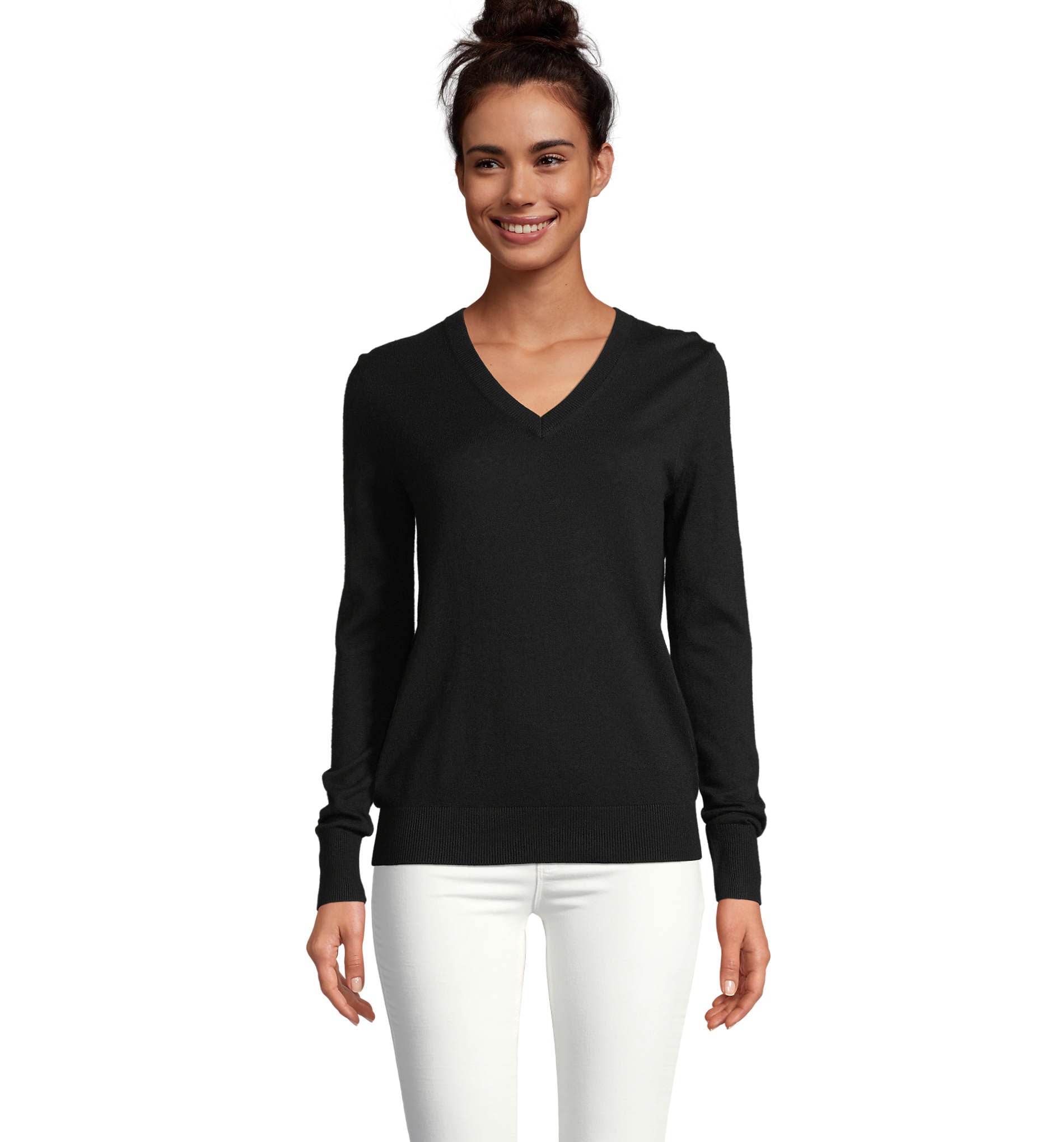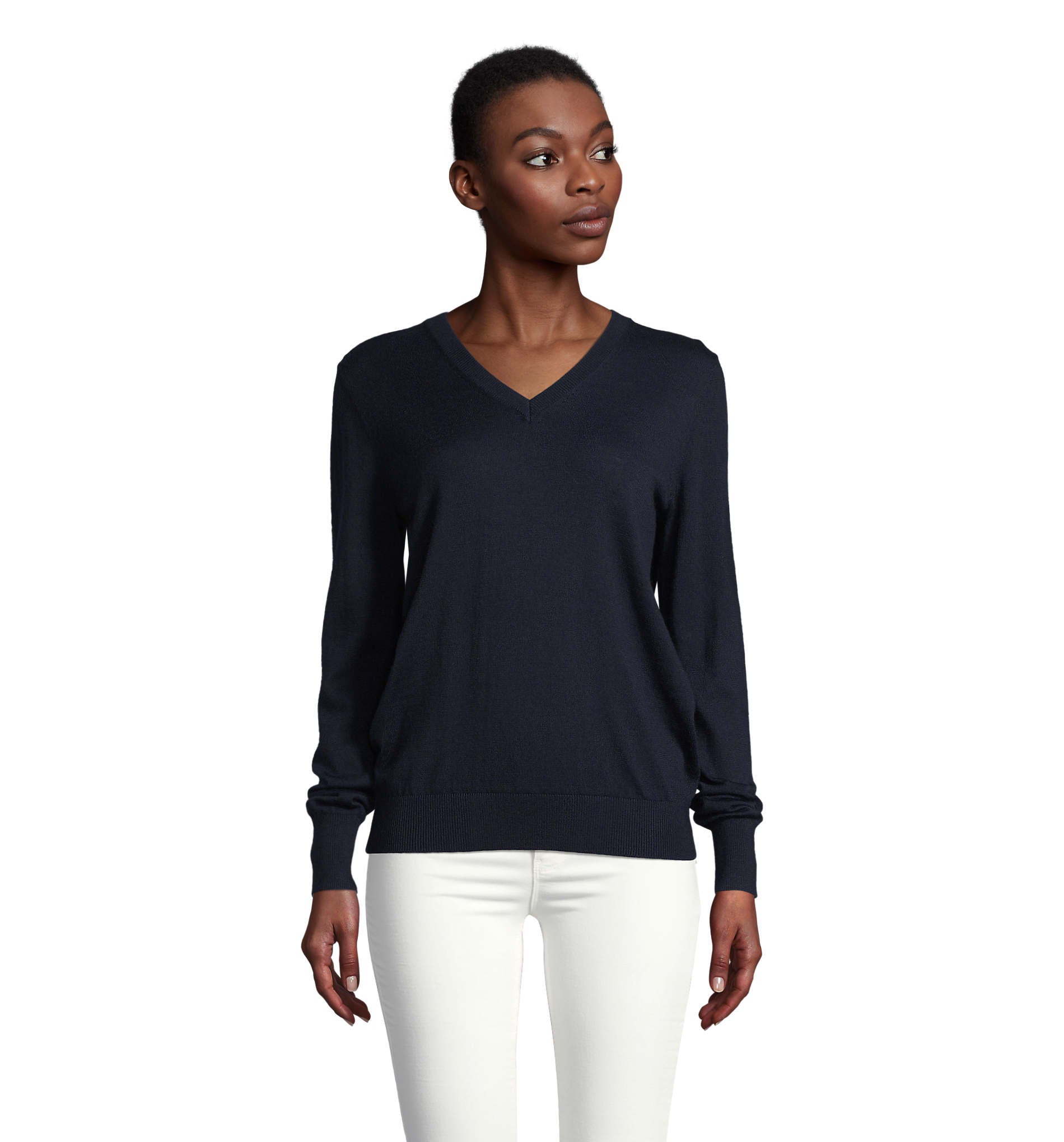 Jersey de Mujer con Cuello de Pico Sostenible de Lana Merina y Poliéster Reciclado con Certificado GRS y OEKO- TEX para Personalizar Sullivan Women