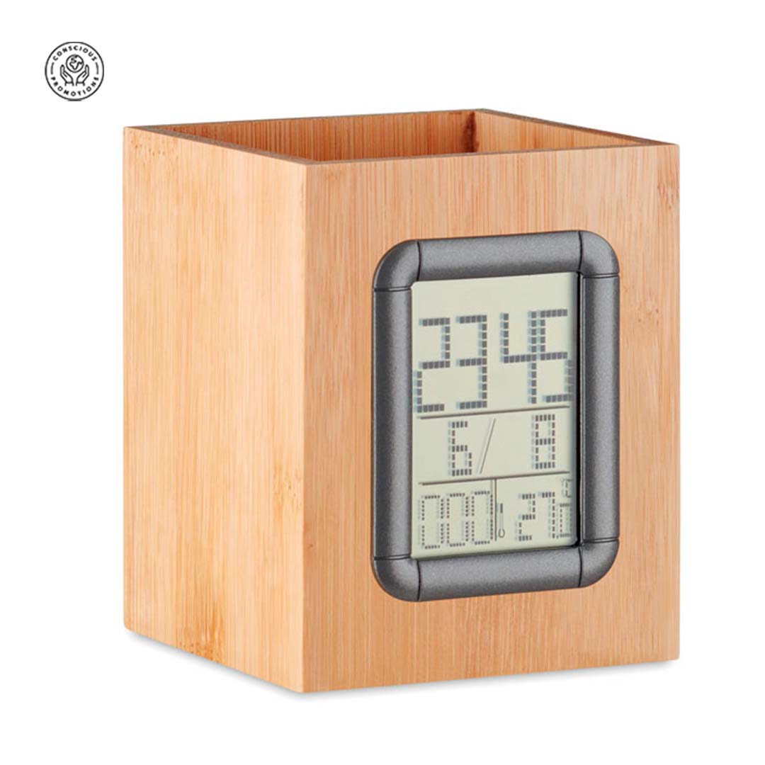 Lapicero Sostenible de Bambú Multifunción con Calendario Despertador y Termómetro Especial Oficinas Manila