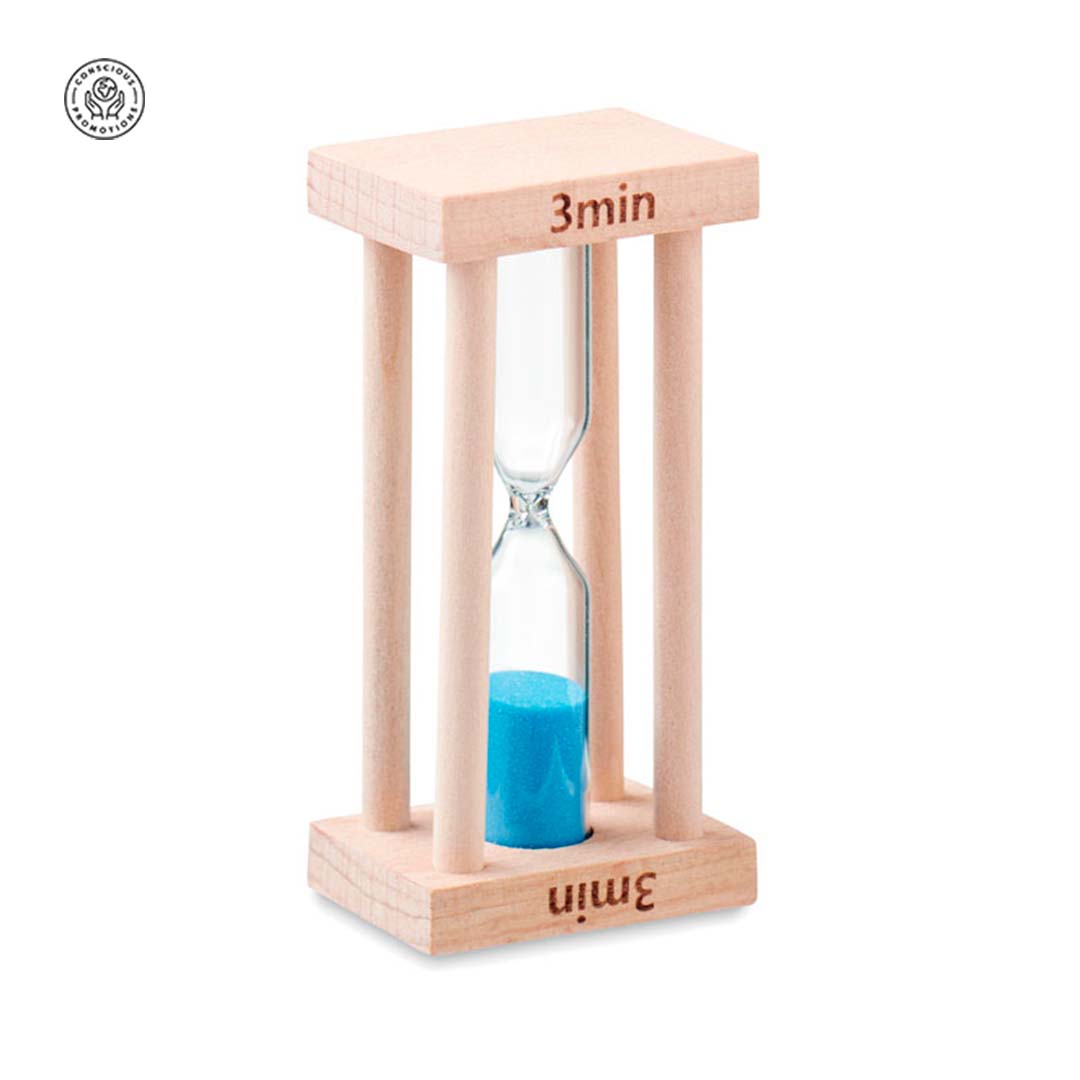 Reloj de arena doble. Hecho de madera y con 1 temporizador (aprox. 3 minutos).