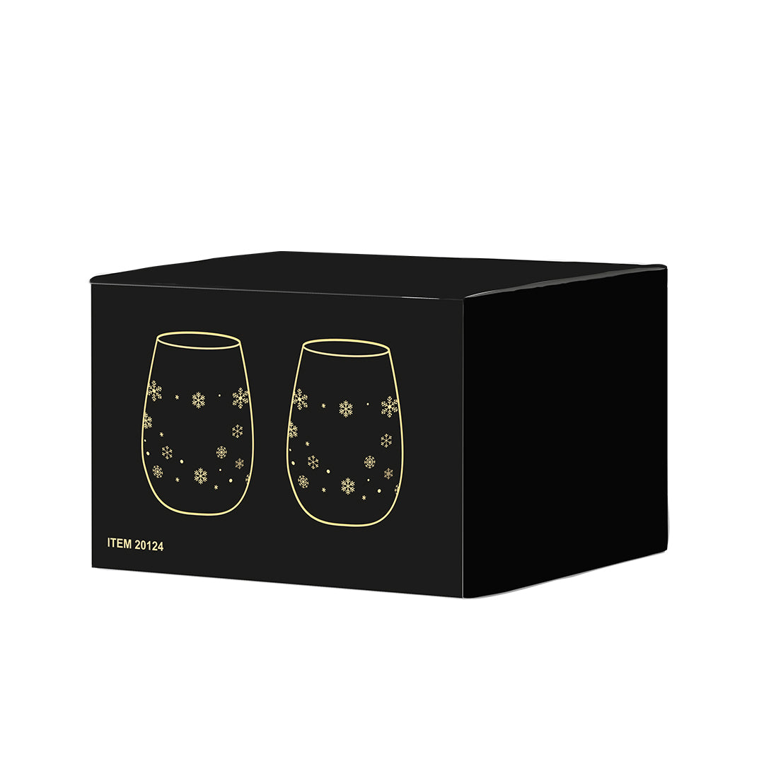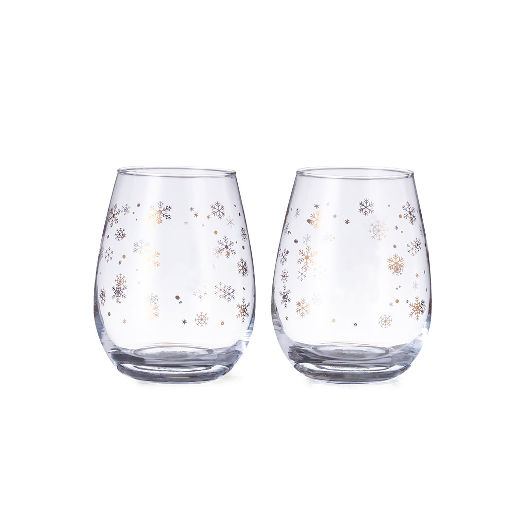 Set de 2 vasos con original diseño de copos de nieve y 500ml de capacidad. Fabricados en cristal, con área de marcaje especial en el frontal.
