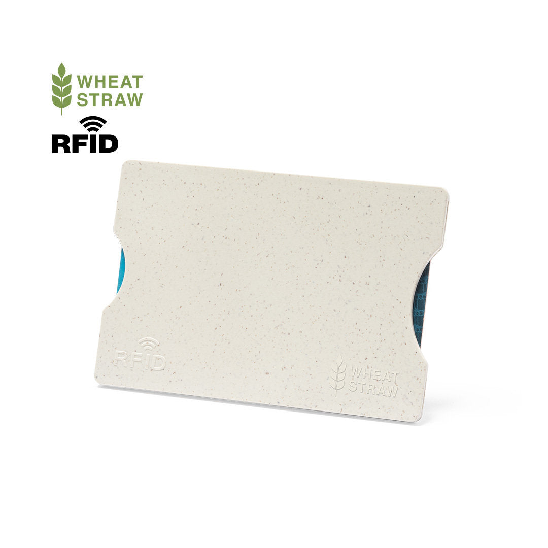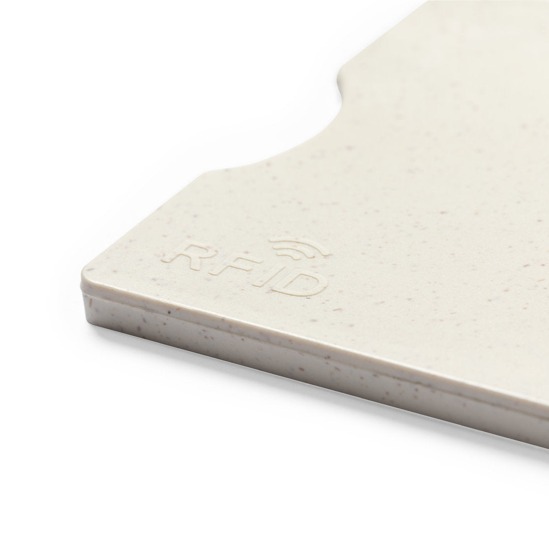 Tarjetero de línea nature fabricado en caña de trigo. Con tecnología de seguridad RFID (Identificación por Radio Frecuencia) que mantiene seguros tus dispositivos de transmisión de identidad. Muesca para fácil acceso a la tarjeta y distintivos RFID y caña de trigo inyectados en molde.